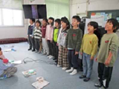 二学期の間にたくさん練習してきて、とても上手になりましたよ。特に②のはっきりした声で歌うのが得意で、口を大きく開けて歌うことができています。