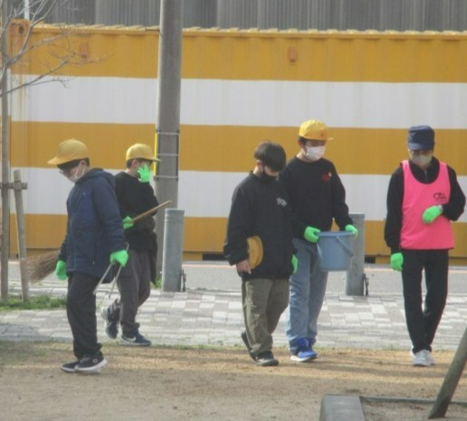 4~6年生が地域の皆さんと共に学校周辺を清掃しました。