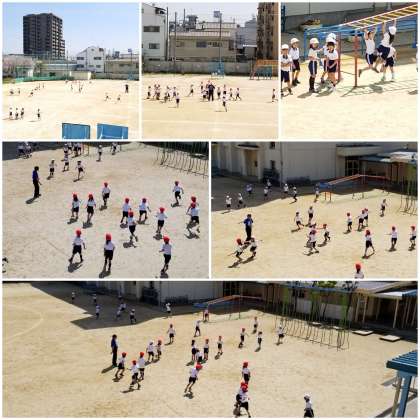 いろいろな走り方や鬼ごっこをしながら、体力づくりをしています。