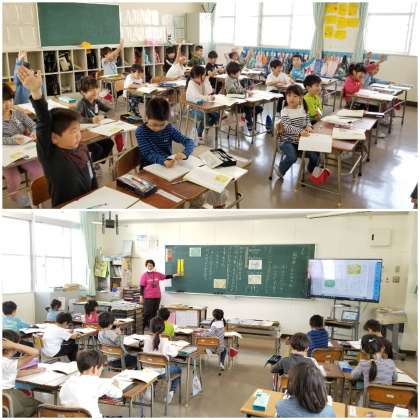 物語の世界を味わっていることが、笑顔で学習している様子からうかがえます。