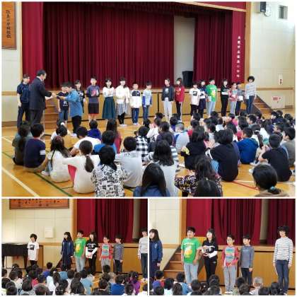 認証状を受け取った子ども達は、自分の目標を大きな声で全校児童に発表しました。
