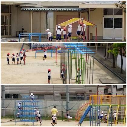 うんてい・のぼり棒・ジャングルジム・鉄棒と順番にサーキットトレーニングです!