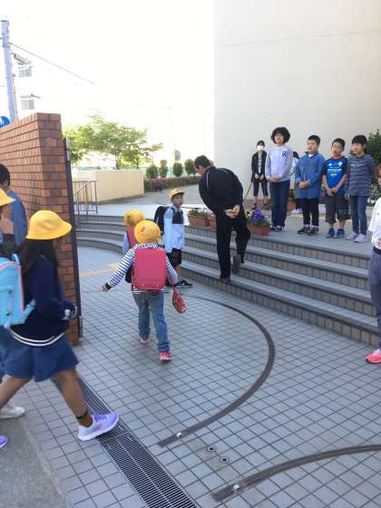 先生だけでなく、児童会メンバーも朝から大きな声で「おはようございます。」と玄関でみんなを出迎えています。