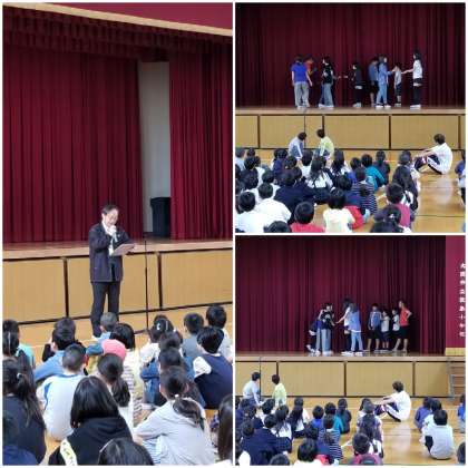 児童集会で、今年度お世話になる学校図書館補助員の方の紹介が学校長よりありました。