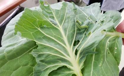3年生が、昨年度末に植えたキャベツに、かわいいアオムシが!