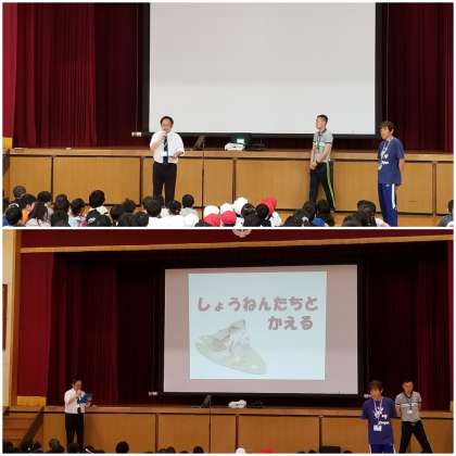 学校長から【しょうねんたちとかえる】という題材をもとに、講話がありました。