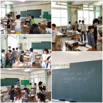 1組では、ゴールデンウイークに何をして過ごしたかを英語で友達と伝え合っています。