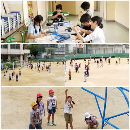 運動場で元気いっぱい遊んだり、裁縫の練習をしたりと思い思いに過ごしています。