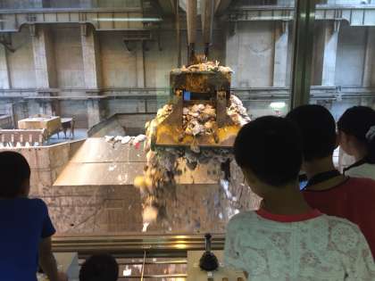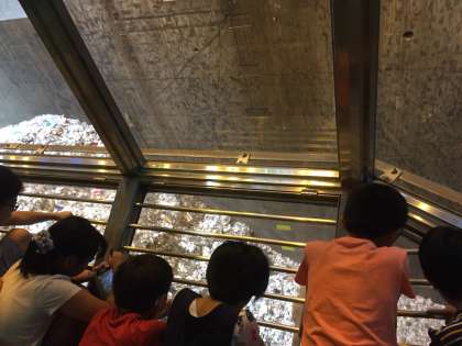 あちらこちらから集められてきたゴミを、大きなクレーンでつかみ取っています。