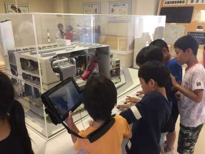 西淀工場内にある、焼却工場の仕組みや工夫がわかる場所を見学しています。