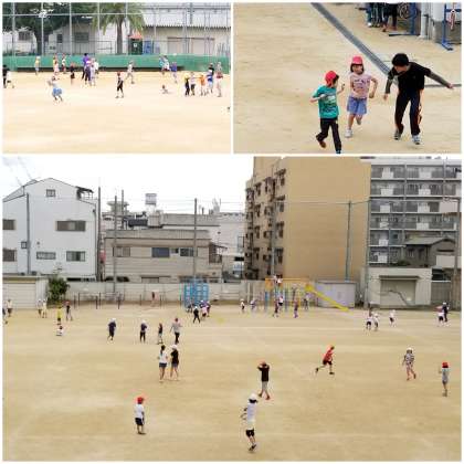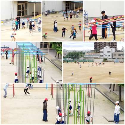 外遊びには絶好の気持ちの良い風が吹く中、子ども達は元気に遊んでいます!