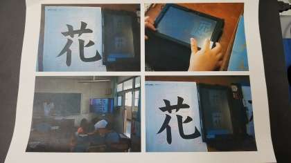 習字の時間にタブレット端末の機能を使って、整った字を書けるように練習しています。
