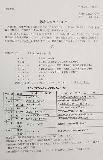 本日、【歌島まつり】についての手紙を配布しています。