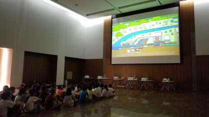浄水場の仕組みについての映像を見ています。