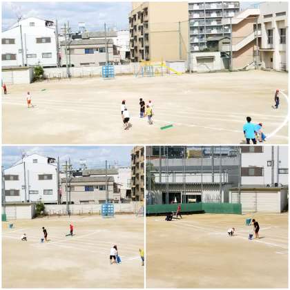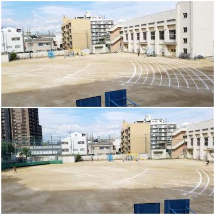 明日の【ソフトボール投げ】に向けて、運動委員会がラインを引きました。