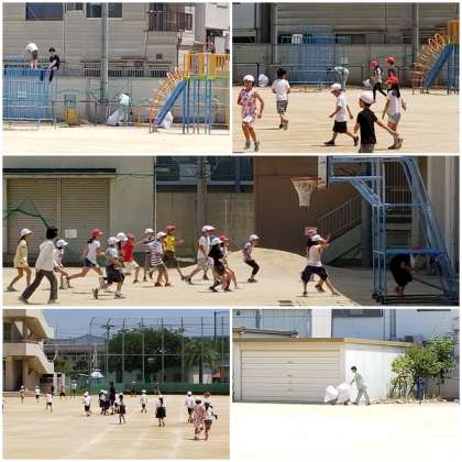 みんな遊びで、5年1組は【だるまさんがころんだ】をしていました。