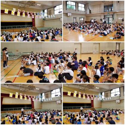 たて割り班活動では、6年生が低学年をやさしくリードして楽しむ姿が多く見られた。