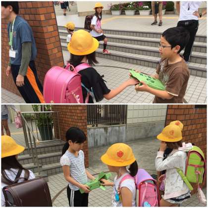 今日から児童会メンバーが、登校時間に正門前でユニセフ募金を呼び掛けています。
