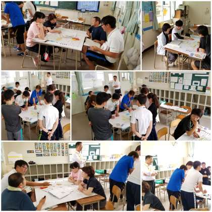 子ども達の気持ちになってみようと、私たちも複合図形の面積を求める問題に挑戦しました。