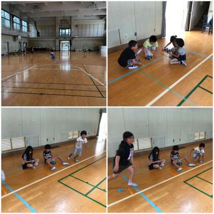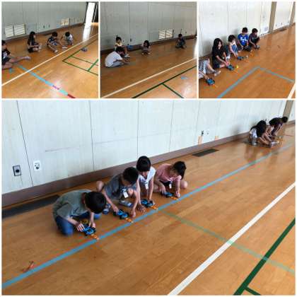 ゴムの働きを利用して、ヨットカーを走らせています。