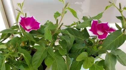 保健室前に、小さく可愛らしい【アサガオ】を見つけました。