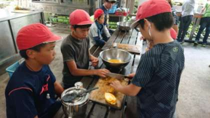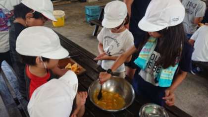 材料と氷、塩を入れた筒を15分間ごろごろころがします。
