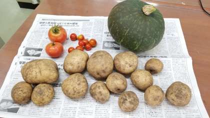 今日の収穫は、じゃがいも・かぼちゃ・トマトです。