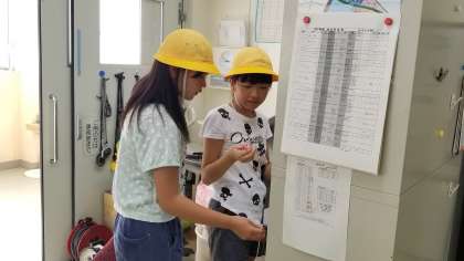 連日の猛暑の中、6年生の飼育栽培委員が「カメの世話と学習園の水やり」に来ています。