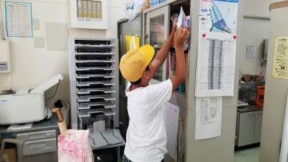 今朝も、家族とのお出かけ前に「カメのえさやり」に当番の子どもがやって来ました。