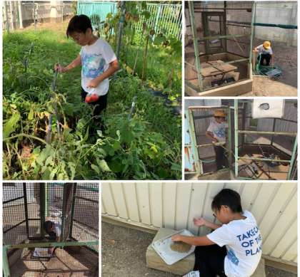 がんばったご褒美に、学習園のトマトをお持ち帰り。