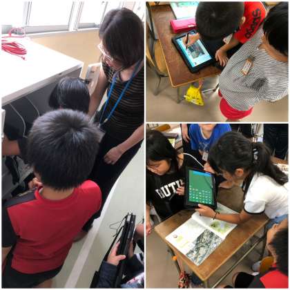 今日は、事前学習の一つとしてタブレット端末を使って、見学したことをまとめる方法を学習しています。