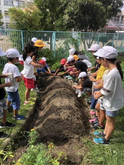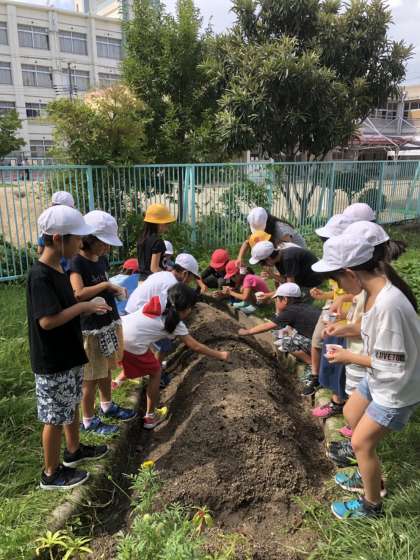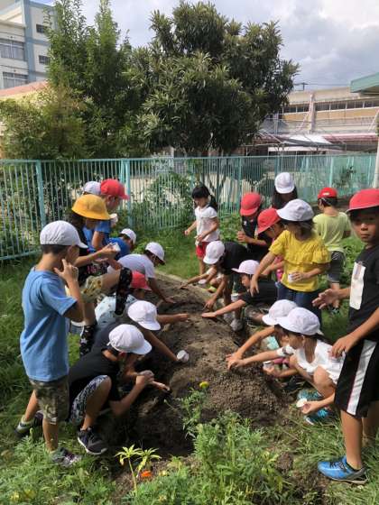 学習園に、なにわ伝統野菜である「天王寺蕪・田辺大根」の種をまきました。