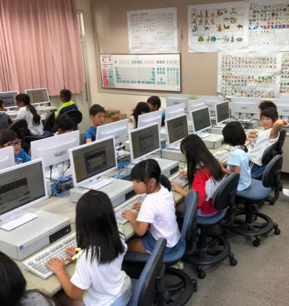 ICT支援員さんにも協力していただきながら、ローマ字入力の練習をしたり、タブレット端末で撮影した写真を印刷したりしています。