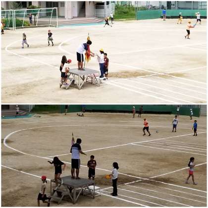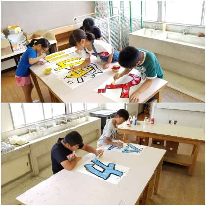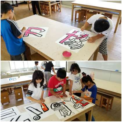 図工室では、スローガンの作成と大活躍の児童会メンバー。