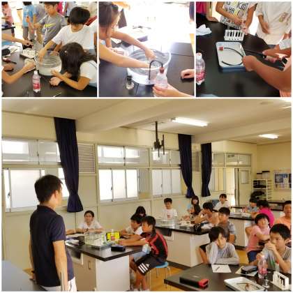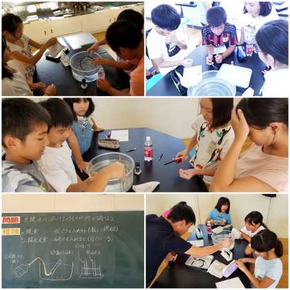「炭酸水に溶けているものが何か調べよう」という問題を解決するために、実験中です。