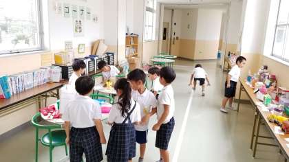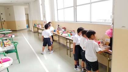 1年生は「○○、すごい!!」「どうやって作ったんだろう?」と友達と話しながら鑑賞しています。