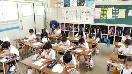 歌島小学校では、敬老の集いに向けてお手紙を書いています。
