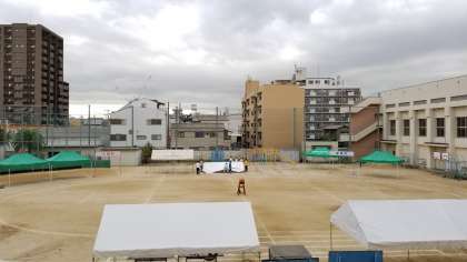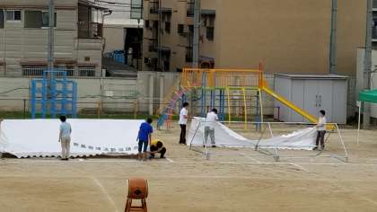 子ども達の暑さ対策の一環として、児童席にもテントを設置しています。