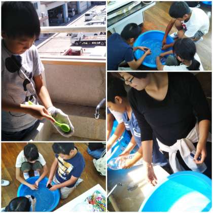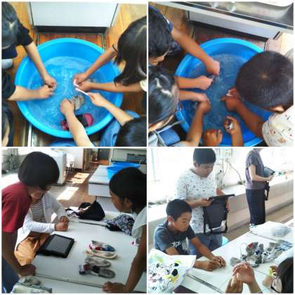 洗う前と洗った後をタブレット端末で写真に撮り、汚れの落ち具合を確認しました。