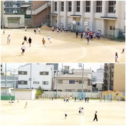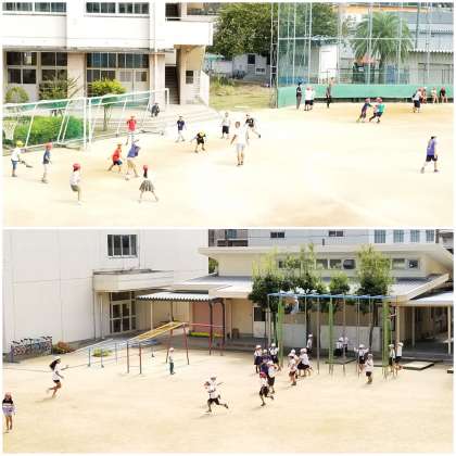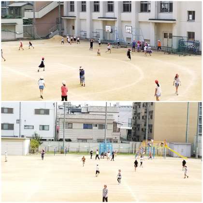 子ども達だけでなく、先生も一緒に外遊びを楽しみます!