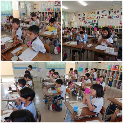 染めだしをして、歯みがきが正しくできているのかを確認します。