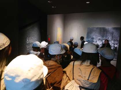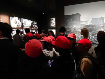 平和記念資料館を見学しています。