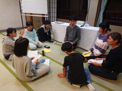 部屋のすごし方で気になったことについて話し合った後、今晩と明日の予定について確認しています。