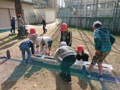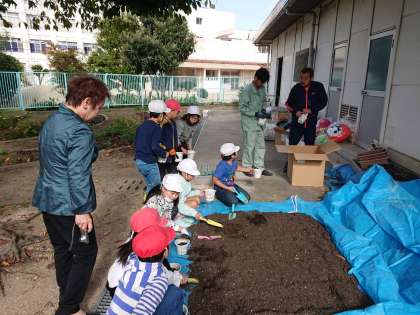 子ども達のために、管理作業員が事前に土の準備をしてくれていました。