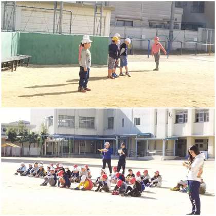 広い運動場でも、しっかりと声が届くように子ども達セリフを一生懸命言っています。