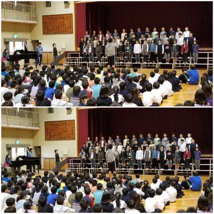 今日は、大阪市小学校音楽交流会に参加する5年生が歌を発表しました。