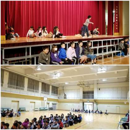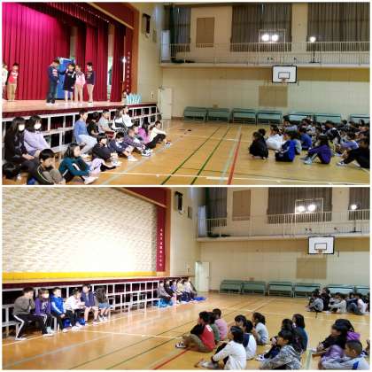 1時限目は、3年生と4年生が相互鑑賞しながら練習していました。