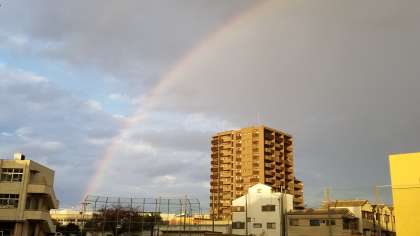 交流会開始時刻には、発表者を応援するかのように空に虹がかかりました。