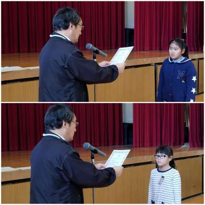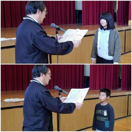 夏休み等に取り組んだ「習字・絵画作品」の表彰を行いました。