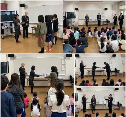 代表で6年生が奨励賞の賞状を、校長先生が感謝状を受け取りました。